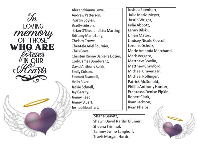 A family awareness day is occasionally held in Waxahachie, Texas, or virtually online for anyone who can attend. For those who can not attend, you can join us online through our event page on Facebook. Light a candle, turn on your porch light purple, use a fire pit, light up your memorial bags, whatever you would like. We post pictures of the event and share stories.