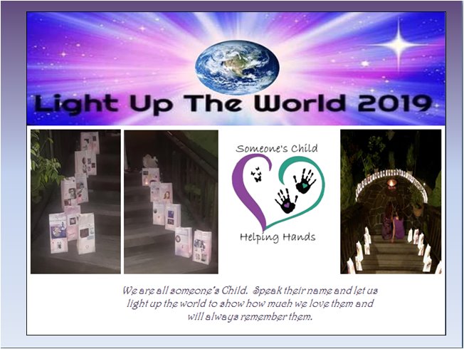 This is a worldwide event that is open to everyone. We will light up the world in the memory of our loved ones we have lost, as well as those still struggling to find their way to the road called Recovery, and those of us already there. We must remember that alcohol is also a substance. It can kill. This can happen to anyone. It does not discriminate.